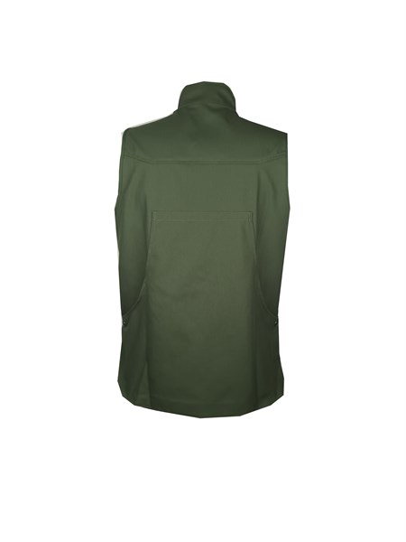 Il gilet 1171 realizzato in Italia è caratterizzato da linee pulite e vestibilità slim, in tessuto 100%cotone canvas, la scelta del cotone garantisce il 100% di traspirabilità e comfort nei movimenti e la trama a nido d'ape del canvas ne garantisce il 100% della resistenza ai rovi e all’abrasione con finitura impermeabile, rinforzato in fibra aramidica K-System® 16% e Cordura per aumentarne le performance sul campo.